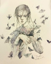 顔料、不透明水彩、シュミンケ透明水彩、鉛筆、アルシュ水彩紙
